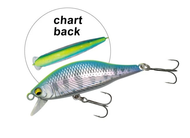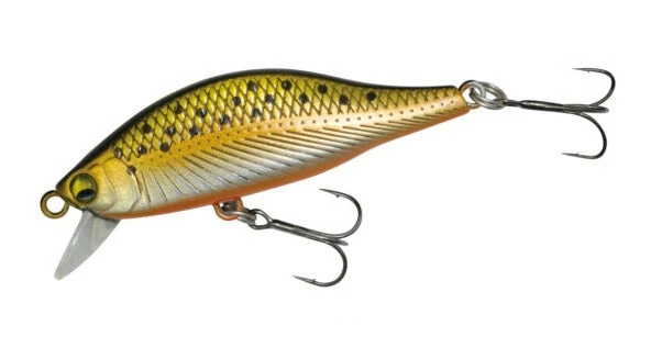 The A2 Flat is a high appeal flat-sided minnow designed to prevent jumping out onto the surface of the water even in fast action and downstream. The body with a built-in original molding weight and a low center of gravity and height arrives at the target range quickly and smoothly. While receiving water in the ventral flat part, it produces a shimmy falling action and can approach even small points in the headwaters with firmness, tenacity, and aggression.