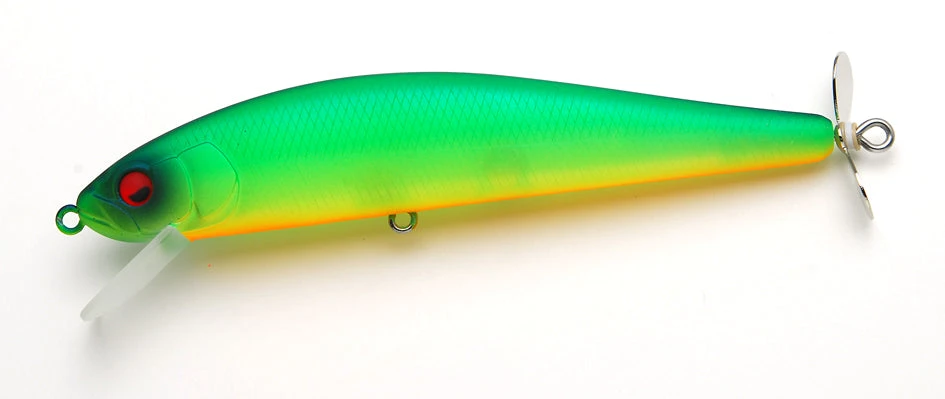 Raid Japan’s switchbait ANSWER can produce a variety of delicate and delicate actions that can technically lure nervous fish. In slow to medium retrieve, it swims smoothly from the surface of the water to the subsurface, generating ideal ripples on the surface of the water and splashing and crunchy sounds from the tail propeller. Perform “line fishing” with a not-too-strong waking action. For rod work, it shows a variety of expressions depending on its strength and stroke. ANSWER, which floats at a slightly downward angle, lowers its head and dives into the water by adding rod work. At that time, the propeller of the tail rotates and creates a sweet sound and splashes to attract fish even in “point fishing”. If you strengthen the rod work or take a long stroke width with a slight ripping, you can dive about 50 cm below the water surface with foam on the body while twisting. It appeals as if it were a real baitfish, and it is possible to appeal to fish that are localized in deep water. In addition, in the extremely gentle rod work that hits the line slack with the weight of the rod, it dives as if bowing on the spot. Rotate the tail propeller when diving to emit gentle splashes and sounds. It is a method that can react even nervous fish such as after spawn by interweaving with a long stay. ANSWER is set so that the propeller rotates during free winding and diving and generates various elements, but the propeller rotates firmly even when surfacing after diving. The propeller that rotates when the fish is brought in by the dive action and slowly rises becomes the bite trigger. Since it is pulled from below while surfacing, it is important to operate with a firm awareness of the “between ascents” to increase the catch. ANSWER has the power to attract fish from deep water more than you can imagine, so please be aware of surface and stay.