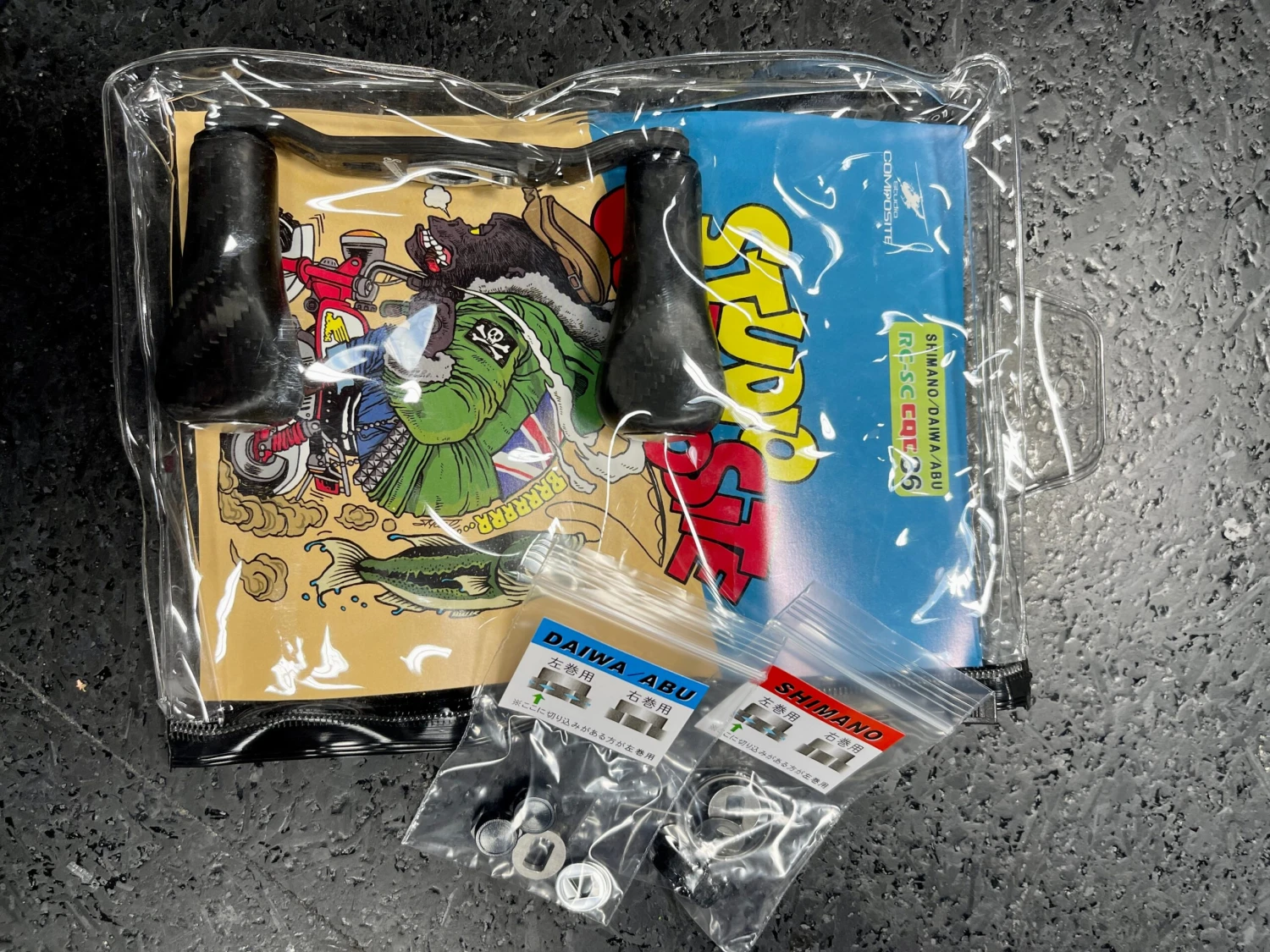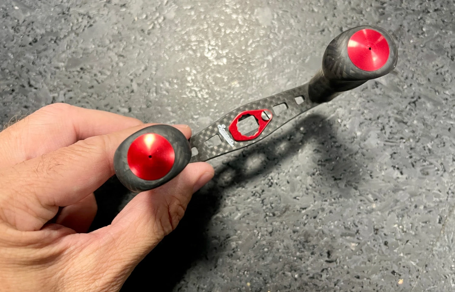 Studio Composite created the CQC series to for anglers aiming for higher performance and versatility from their gear. These handle were designed with sensitivity and torque in mind for lower gear ratio reels. Its flattened paddle-style carbon knobs allow for positive gripping force and comfort in hand.