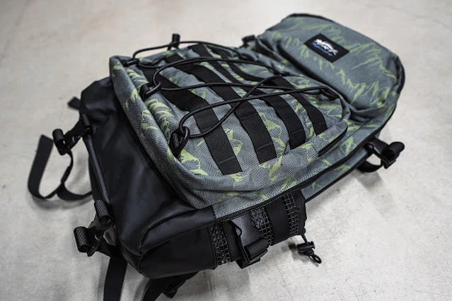Made of super durable Cordura fabric, the DRT Explorer Backpack is a highly functional fishing backpack with a cool style. Â Multiple padded pockets and dividers make storing swimbaits or boxes easy. Â Webbing for attaching accessories or storing jackets and other bulk items is easy. Â Waterproof bottom eliminates wet gear when taking off. Â Ultra padded shoulder straps make carrying all day a breeze even when loaded fully.