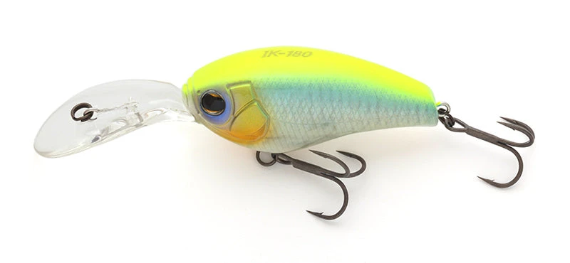 The IK-180 is the first model equipped with Imakatsu’s original wind drip model. Wind drip converts diving force into side-to-side movement, generating soft and strong vibrations. Although it has a relatively long grip, it does not dive deep, and the wind drip guards the front hook, so it is also strong in lip wrap, wood cover, and weed. In addition, a non-rattle fixed center of gravity is used that does not apply extra pressure when it comes into contact with the cover. It is designed to provide a comfortable flight distance while having a fixed center of gravity.