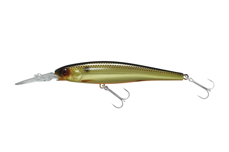 The well-balanced and light pulling comfort that corresponds to high-speed retrieve creates the high-pitch rolling action that is characteristic of Jackall’s Dowzvido 90SP. The fish collecting effect and good response by the quick roll action are excellent. The Dowzvido Uses a triple center of gravity movement system with a wide range of motion. It boasts excellent long-distance castability due to stable flight attitude. At the start of retrieval, the moving ball quickly returns to the front, diving to 2 m or more with stable action and inducing a bite.