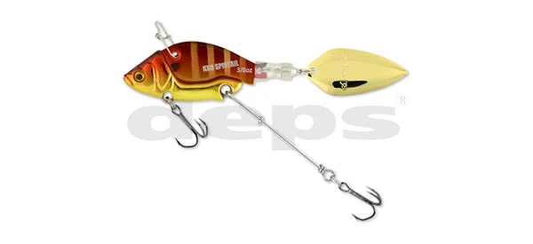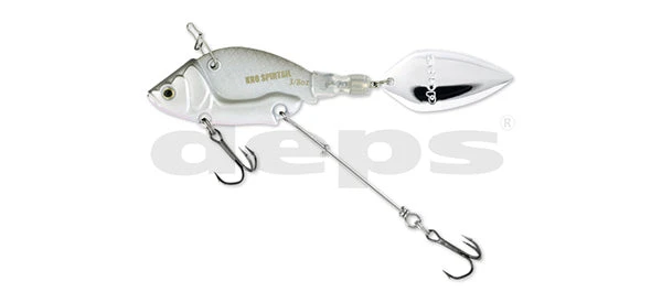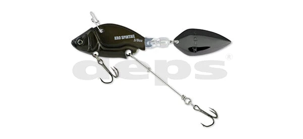 Deps set out to create the greatest tail spinner of all time, and the result was the KRO Spintail! The KRO Spintail is made of half lead and half circuit board, which gives the bait a tremendous tight vibration. The unique shield-shaped blade is designed to spin effortlessly with very little water resistance and is attached to the bait with a ball-bearing swivel, which allows the blade to spin more rotations than any other tailspin. Finally, you will notice the drop-down rear hook. Deps discovered in testing that a lot of tail spinner bites happen at the blade, so they designed this hook to swim underneath the blade to all those short strikes are now hook-ups!