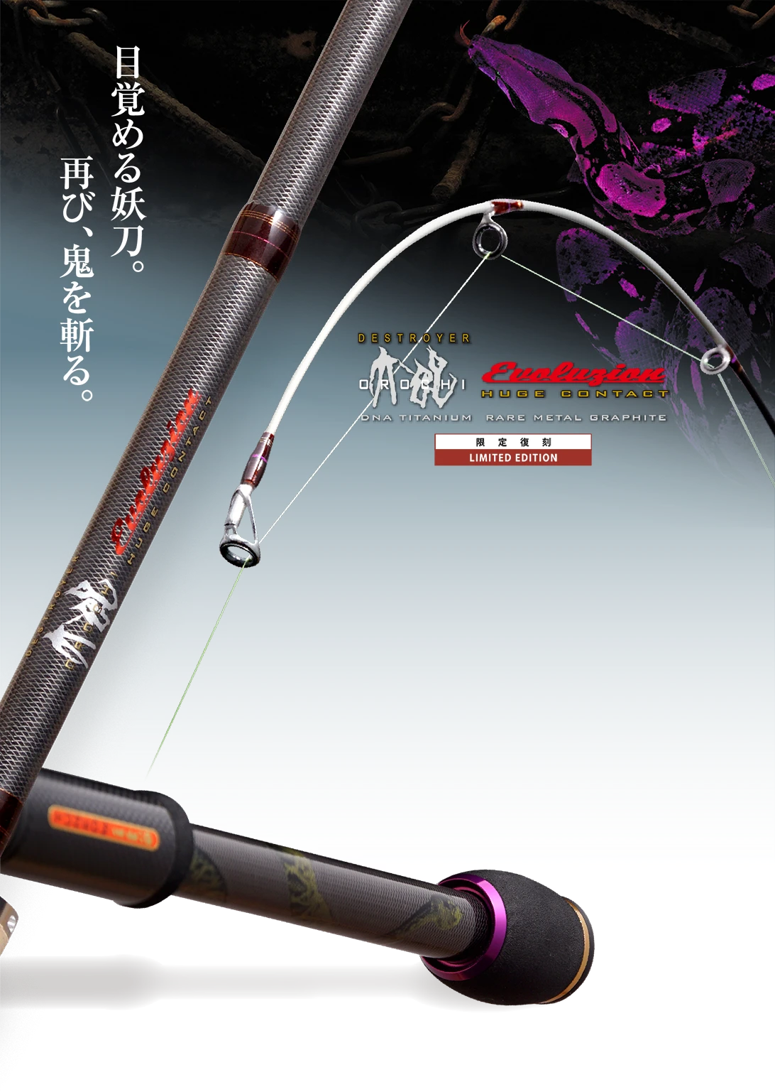 The OROCHI EVOLUTION uses high-elasticity, high-rigidity ITO DNA double helix titanium and combines it with low-elasticity, high-sensitivity Megabass rare metal carbon blanks, creating the world’s first metal fusion rod. The flexible and agile tip allows it to target and subdue prey, and produces power far beyond what is expected from a spinning blank with such a sensitive tip. On top of that, its amazing lightness and specialized response to weight loads can launch even 4 inch no sinker worms over long distances with ease. The OROCHI EVOLUTION’s amazing ease of use exhibits its decisive power not only in bass finesse games, but also in early spring’s big trout games and sea bass.