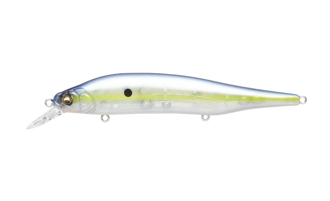 The Megabass Ito Shiner is the prequel to world famous Ito Vision 110 jerkbait. The Ito Shiner was the bait that inspired the 110, and was kept secret by Megabass designer Yuki Ito until now. The Ito Shiner features a triple tungsten weight oscillation system for further casts in any condition. It also displays a sharper high-pitch and roll-action compared to the Vision One-Ten, darts up to 30% farther than the One-Ten, and features a flat-side shiner body that creates an intense side flash on each dart.