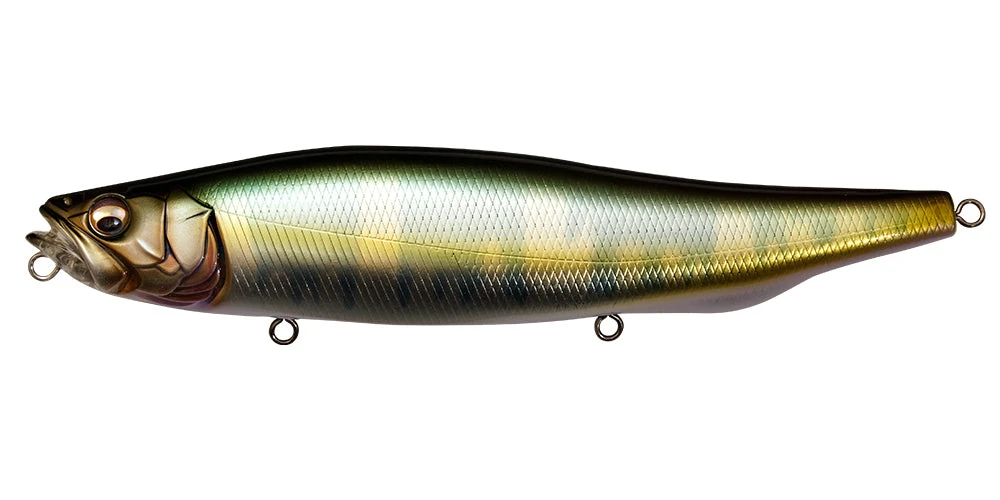 Miracle bait MEGADOG-X, which drives monsters crazy for feeding, enables strategic feeding games on stages that prey on large baits. The Megabass original research results obtained from a variety of perspectives, including marine fisheries research facilities, are abundantly incorporated into the MEGADOG series on the question, “What is the element that selects the surface bait as a target from the predator?” MEGADOG-X’s hidden potential will make big bait games even easier and more exciting. Despite its large size, the pulling resistance is extremely light, and the setting that can produce a sliding action where the bait escapes just by reeling will reduce the burden on the angler. Equipped with two inertia balancer systems that keep an appropriate distance from the action fulcrum and exert centrifugal force to move the weight. Although it is a mega size pencil, it is possible to produce an accurate slide action under any conditions.