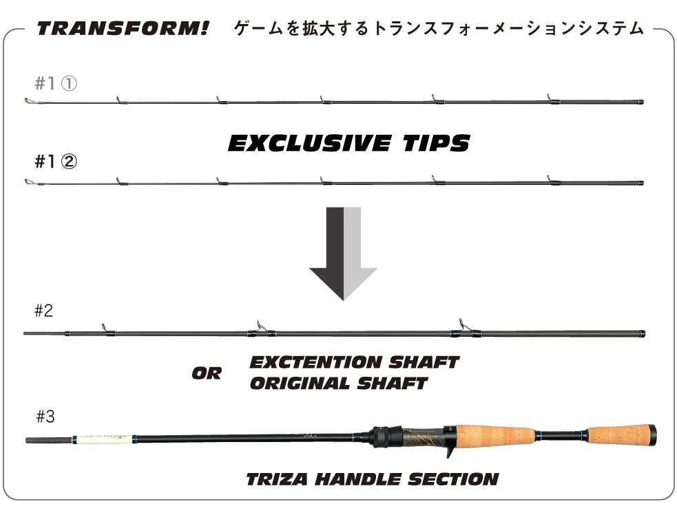 Introducing a whole new concept in multi piece bass fishing rods – Triza. Megabass set out to develop the ultimate multi piece rod that not only blew other multi piece rods away, but that also made one piece rods jealous. At first glance you will notice the traditional, hard crafted aesthetics of Triza, such as hand carved wood reel seats, polished guide and hand painted cosmetics. But beyond it’s striking good looks, Triza is a totally new concept in rod building. Megabass is calling it the Triangle Concept. Each pice of the 3 piece Triza rods makes up one side of the Triangle. One piece is built specifically for Torsional Rigidity, one piece for Torque, and one piece for tension/action. Together, the 3 pieces create one rod that is specifically designed for certain applications that offers a higher performance level than a one piece rod can. Available in 4 models. Rod comes with rod sock.