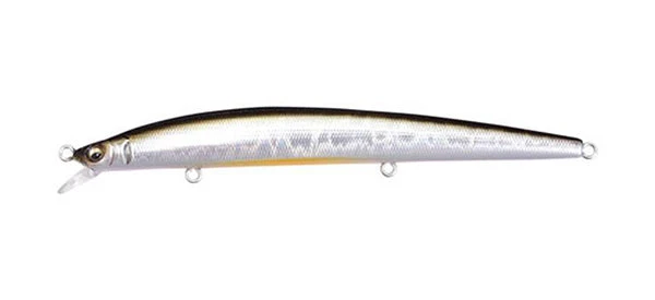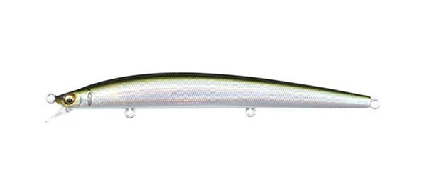 Megabass has succeeded inventing the minnow that will defy the conventional hard-plastic minnow bait. It is X-120. Near perfect spherical balancer is inside its super slim body. The body is designed to give the maximum strength and the same time to give it the extreme details. It is super responsive and its fast pitch rolling action gives out flashings, which will convince not only the game fish but also anglers as well. With its lip, being the half the thickness of pinky nail, the air resistance is kept to the minimum, which assures the maximum casting distance under any circumstances. X-120 will float to the surface when you stop retrieving and its slim body gives amazing long distance darting action. X-120 may be called ‘dart-bait’, rather than jerkbait.