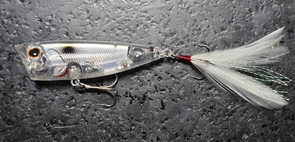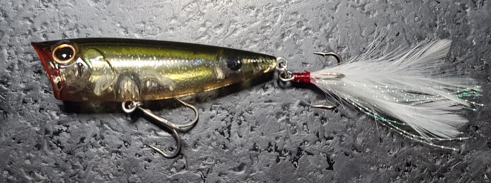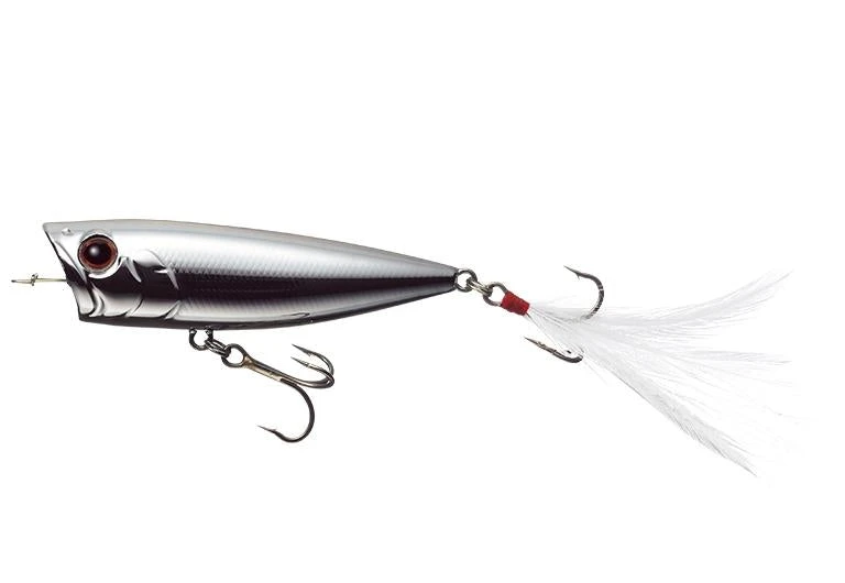 The Evergreen OB-68 is lure does the job of “conquering the surface pattern.” The body, which is designed with its tail flipped up, reduces air resistance, cuts through head winds, and casts long distances to search a wider area. It has increased control due to better weight distribution and body balance. With a body balance that responds sensitively to rod work, it can handle with ease a variety of challenges, from slow action by standing trees or rocks, replicating high-speed action of a bait chased by backwaters, and turning action within a narrow traveling range to high-speed twitches. Rattles in four different materials — tungsten, brass, steel and glass — produce sounds in different frequencies. The hybrid rattle sound has wide appeal to fish under various conditions.