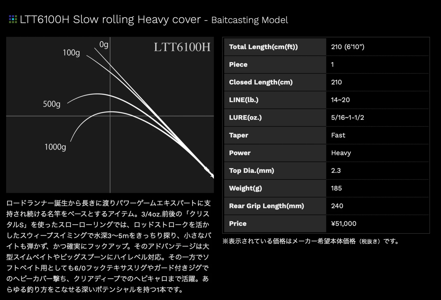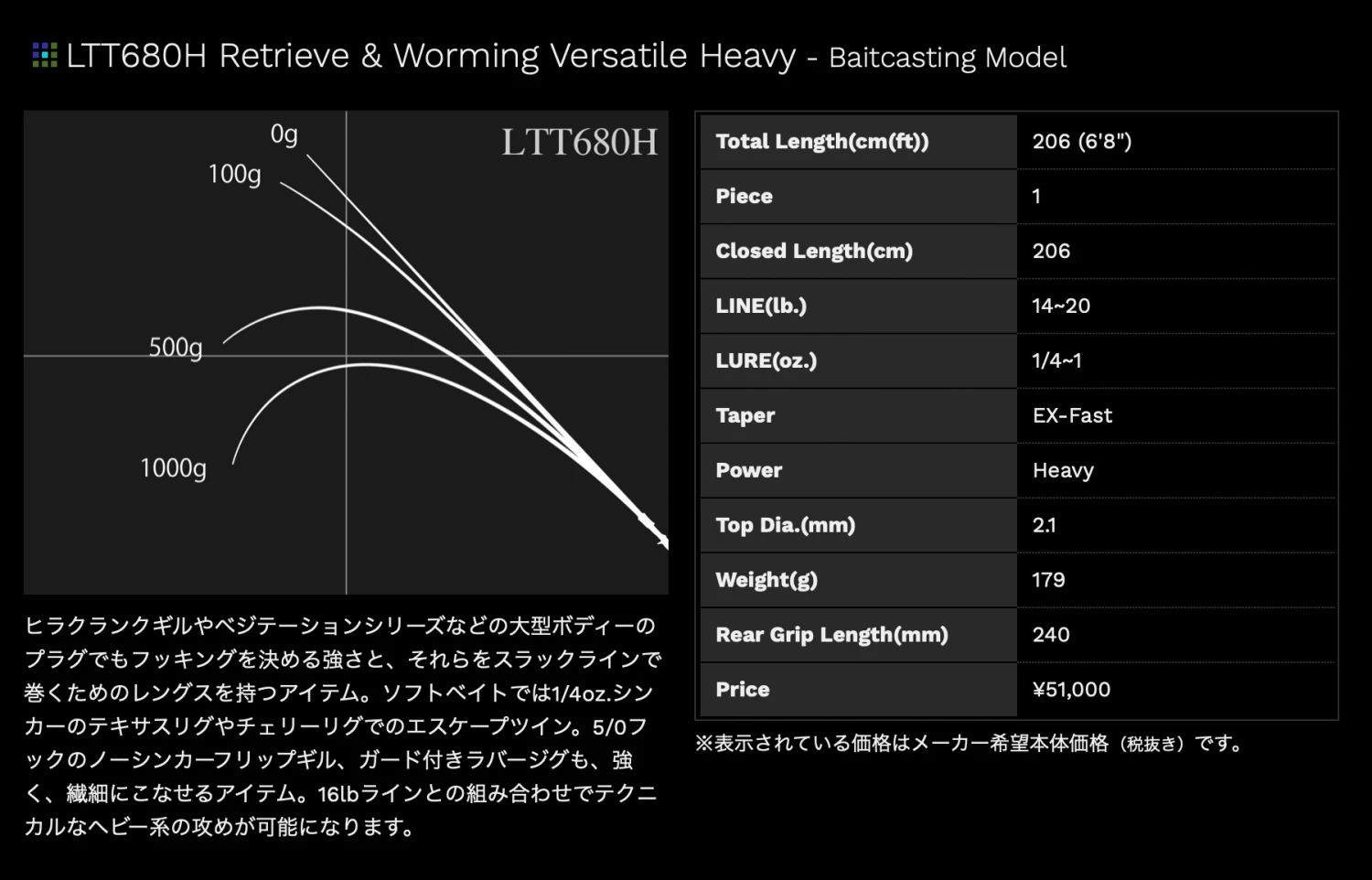 | Option | LTT 6100H – 6'10" Heavy, LTT 680H – 6'8" Heavy |