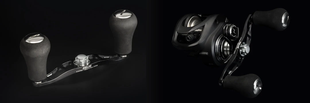 A handle for bait reels devised by fusing the functionality that is the core technology of ZPI and the design by machine cut technology at a high level. Commercially available metal handles are heavy and unbalance the weight of the reel, making them difficult to handle. Achieves weight reduction while leaving the “beautiful and cool” appearance of the metal handle. Commercialized a rational and passionate concept that makes use of many years of experience. —ZELOS MC handle —To the handle that gives the degree of freedom in design and expresses the external features of the reel. An innovative machine-cut handle that combines machine-cut processing with a sense of luxury and functionality that brings about a smooth Italian curved surface. Extra super duralumin A7075T6 Handle plate finished with beautiful curves and space design that boldly billet the highest strength material by machine cutting. Equipped with a genuine Arcance round and flat knob, the weight is reduced to that of carbon material, and high-dimensional power and technical handle operation is realized.